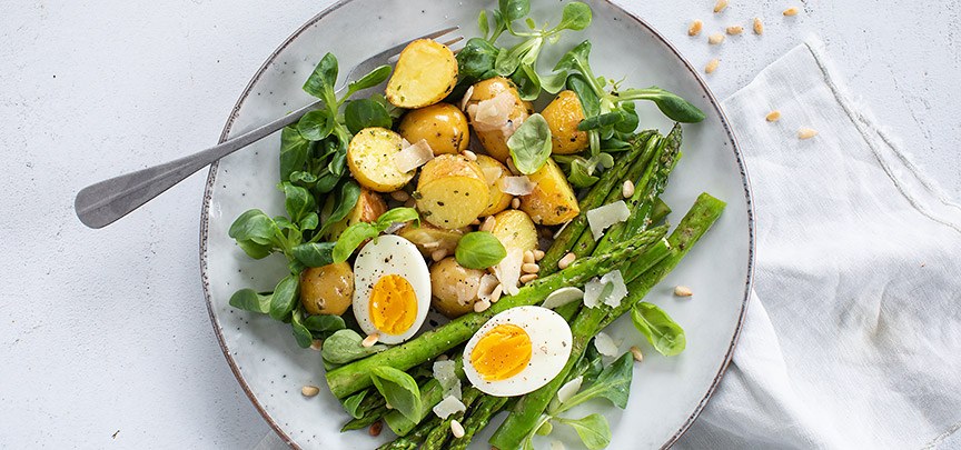 Groene asperges met aardappeltjes en ei