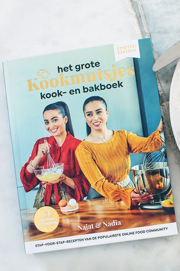Het grote kookmutsjes kook- en bakboek is een mooie uitbreiding op hun grote Facebook community en blogsite. Daar delen deze 2 zussen al een aantal jaar hun heerlijke gerechten inclusief stap voor stap foto’s. Hoewel Najat en Nadia Marokkaanse roots hebben delen ze ook veel andere recepten zoals heerlijke pasta’s, curries en Hollandse erwtensoep, heel breed dus. En ze staan ook bekend om hun heerlijke baksels zoals M&M cheesecake, chocolade kokoscake en red velvet cupcakes.