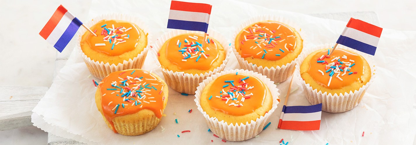 Lekker smullen tijdens Koningsdag; vers gebakken muffins met een vleugje sinaasappel en een oranje glazuur laag