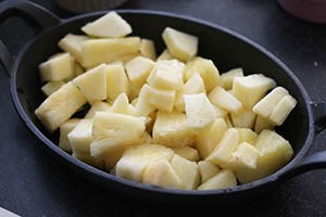 3. Tip: je kunt deze ananas crumble ook in de oven maken. Bekijk deze appel crumble voor de instructies.