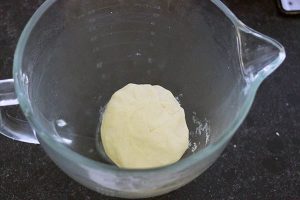 3. Wikkel het deeg in huishoudfolie en leg zolang in de koelkast.