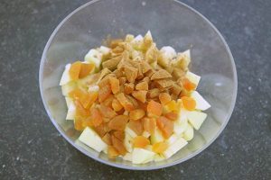 5. Snijd ook de gedroogde abrikozen in stukjes.