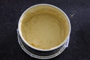10. Bekleed de vorm met het deeg. Gaat dit niet zo handig? Geen probleem, neem de bal deeg en druk deze met je vingers uit in de vorm tot de hele bodem en de zijkanten bedekt zijn met een laagje deeg.