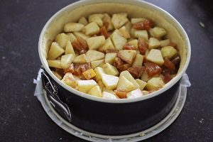 12. Verdeel het appelmengsel over de bodem en druk ietsjes aan.