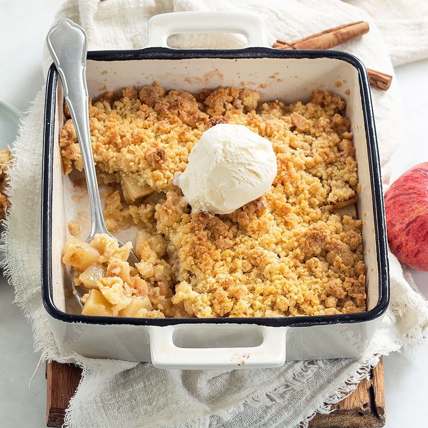 6. Bak de appel crumble ca. 25 min in de oven tot hij goudbruin is.