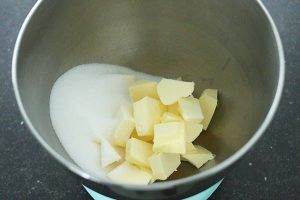 3. Tip: zorg dat alle ingrediƫnten voor de cake op dezelfde temperatuur zijn en voeg ze beetje bij beetje toe om schiften te voorkomen.