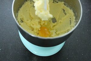 1. Verwarm de oven op 175 graden. Vet een bakvorm goed in en leg eventueel een velletje bakpapier op de bodem, hierdoor gaat hij er makkelijker uit. Mix de suiker met de vanillesuiker en boter romig. Mix een voor een de eieren er door. Zeef het zelfrijzend bakmeel met een snufje zout er bij. Spatel of mix nog een keer goed door.