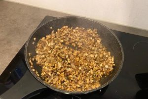 6. Schep het champignon mengsel in de keukenmachine.