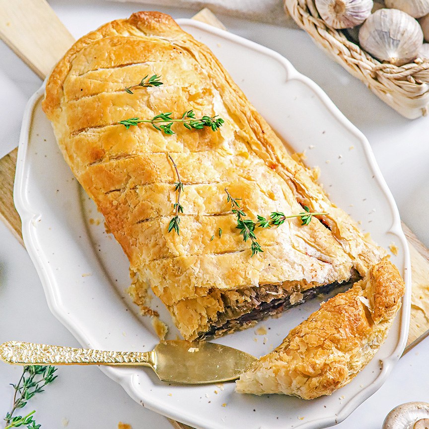 13. Snijd de wellington in stukken en serveer meteen.