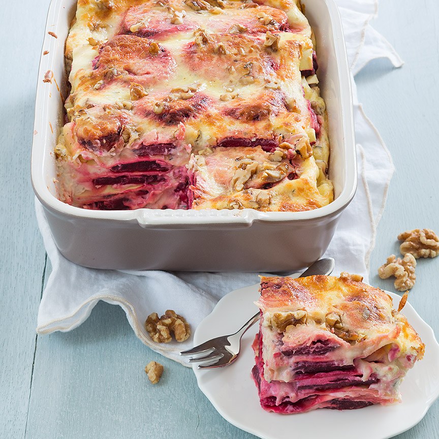 Bietenlasagne met walnoten
