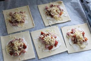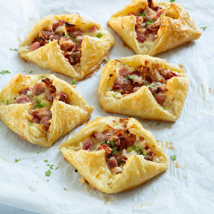 Bladerdeeg hapjes met ham en kaas