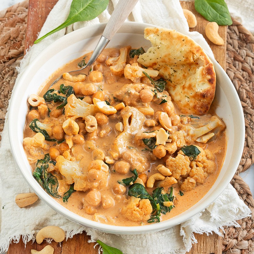 6. Tip: serveer de bloemkool curry met bijvoorbeeld wat naanbrood en/of rijst.