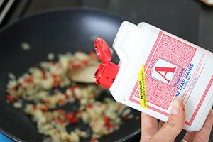 1. Je kunt bloemkoolrijst kant en klaar kopen bij de meeste grotere supermarkten of zelf maken door een aantal roosjes bloemkool fijn hakken in een keukenmachine tot de grootte van rijst.