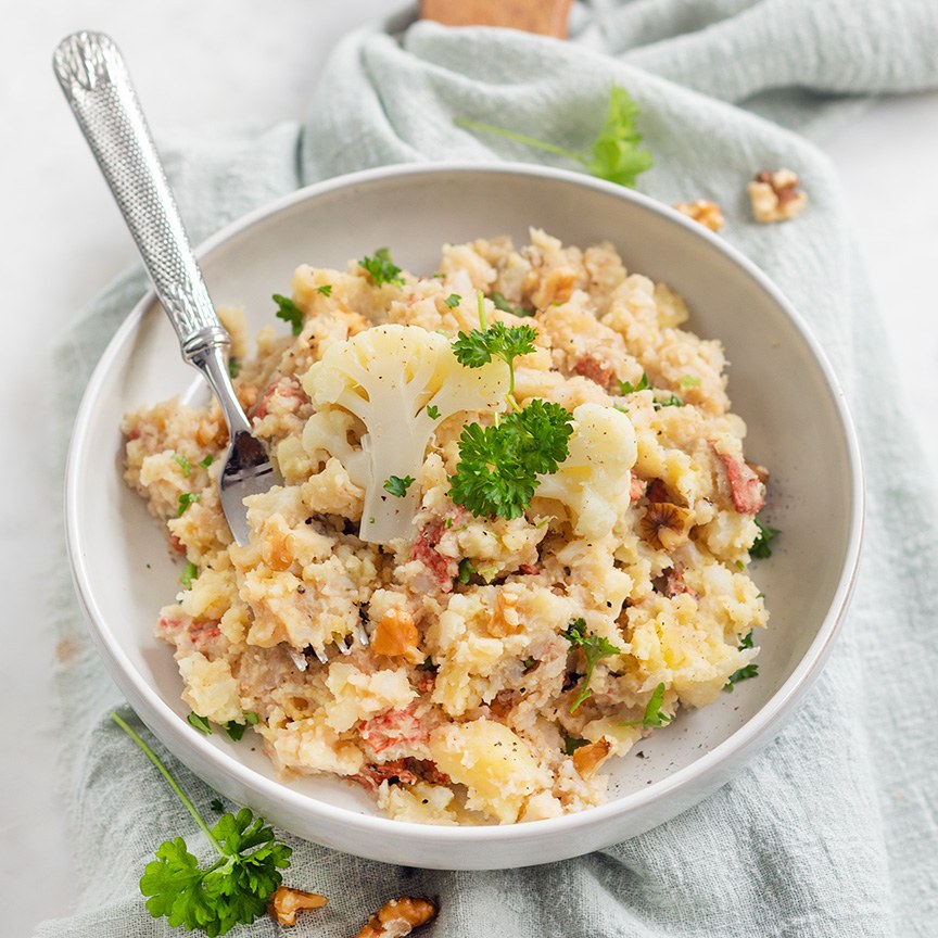 Bloemkoolstamppot met spekjes