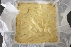 7. Laat de blondies afkoelen in de vorm.