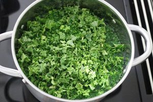 1. Breng een grote pan water met een snufje zout aan de kook en voeg de aardappels hier aan toe in gelijke groottes. Voeg na 5 minuten de gesneden boerenkool toe bovenop.