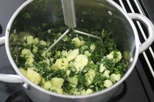• 600 gr boerenkool + 1.1 tot 1.2 kilo aardappels = 5 personen