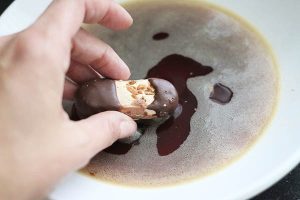 3. Steek aan de bovenzijde een half Bokkenpootje in de room. Serveer de Bokkenpootjes tiramisu direct of bewaar hem in de koelkast. Een hele nacht kan ook maar dan bestaat wel de kans dat de bokkenpootjes zachter worden.