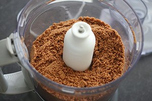3. Mix de speculaasjes fijn in een keukenmachine en meng daarna de kruimels met de gesmolten boter.