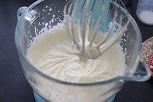 5. Klop de slagroom stijf met de kloppudding, melk en Klop Fix.