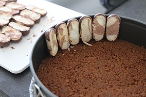 6. Snijd de bokkenpootjes voorzichtig los van elkaar. Zet ze vervolgens tegen de rand van de springvorm.
