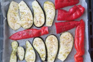 3. Strooi wat oregano, olijfolie, zout en peper over de groenten heen.