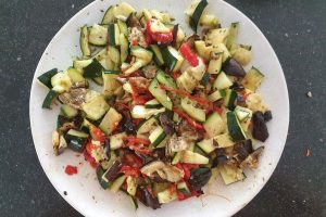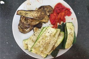5. Grill de groenten totdat er mooie grillstrepen in ontstaan en/of je door de groenten heen kunt prikken. Check goed of de aubergine gaar is en grill die eventueel nog iets langer indien nodig.