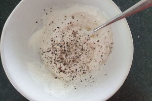 10. Meng de ricotta met het meeste citroenrasp- en sap en wat peper. Roer het goed door elkaar.
