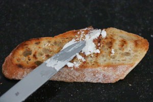2. Besmeer de broodjes met een beetje geitenkaas.