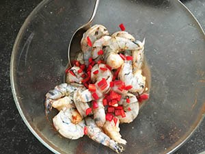 2. Schep de garnalen erdoor en laat minimaal een half uurtje marineren.