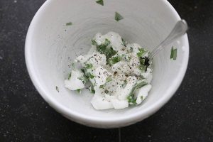 4. Meng de roomkaas met een snufje peper en zout.