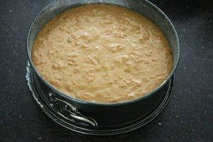 3. Leg een stuk bakpapier op de bodem van de springvorm en vet de randen goed in. Bestuif vervolgens lichtjes met zelfrijzend bakmeel of bloem. Giet het beslag in de vorm en bak de carrot cake 60 minuten in de oven, laat daarna afkoelen.