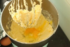 2. Mix de suiker met de vanillesuiker en boter romig.
