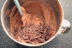 6. Hak de chocolade in kleine stukjes en schep deze als laatste door het beslag.