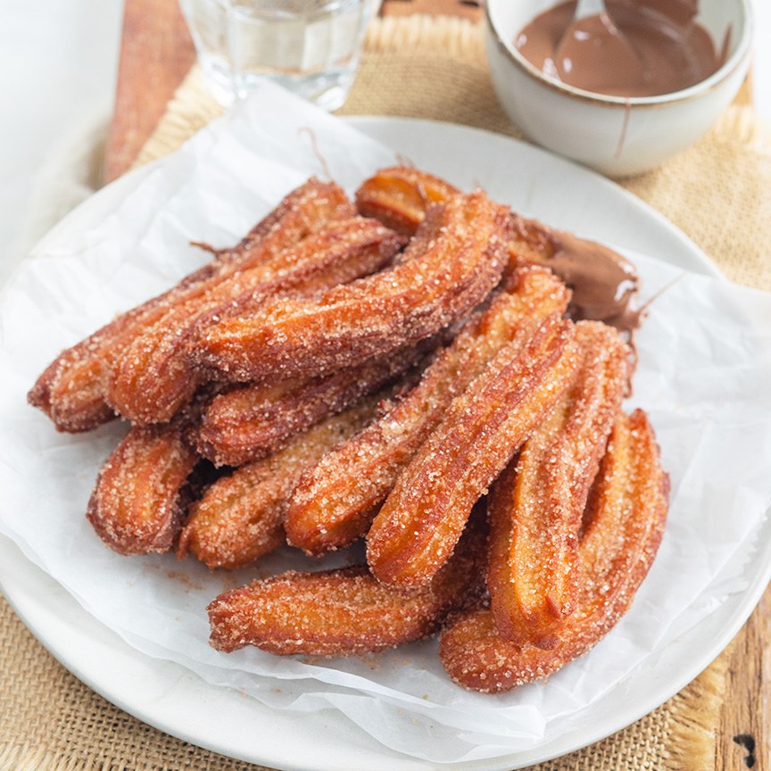 5. Meng in een diep bord de overgebleven suiker met de kaneel. Rol de warme churros door dit suiker-kaneelmengsel.