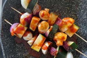 4. Grill de spiesen 5-7 minuten in de grillpan of op de BBQ.