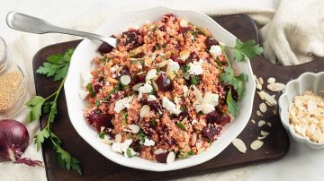 5. Maak het gerecht af met wat amandelen en peterselie.