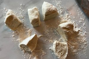 4. Verdeel het deeg in 6 tot 8 gelijke stukken en rol deze uit tot kleine bollen.