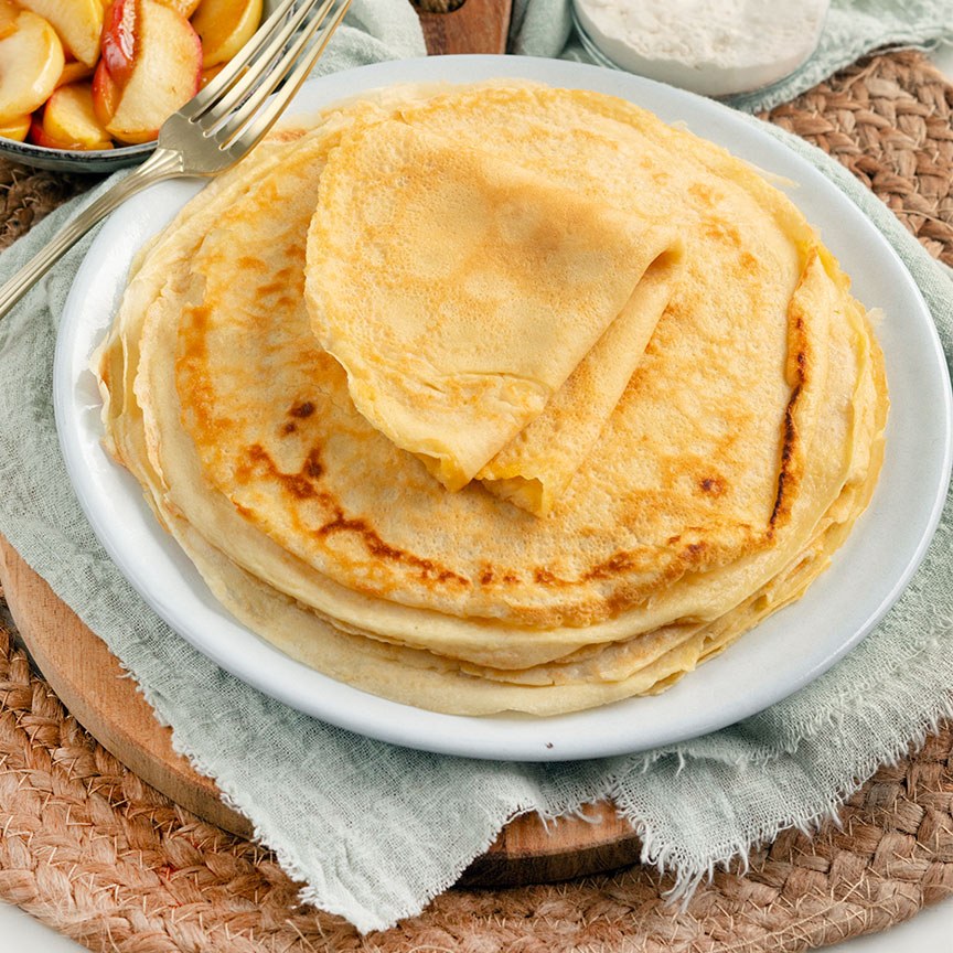 11. Serveer de flensjes warm met je favoriete vulling of topping, zoals vers fruit, poedersuiker, ahornsiroop of slagroom.