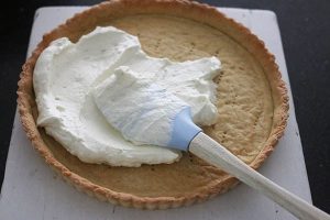1. Verwarm de oven voor op 180 graden. Begin met de bodem: meng het zout en de basterdsuiker door de bloem. Voeg dan de koude boter in stukjes toe en het halve ei. Mix tot een deeg dat je daarna kort met je handen tot een egale bal kneedt.