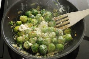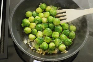 3. Breng een pan water aan de kook en kook de spruitjes ca. 5 tot 7 minuten voor tot ze beetgaar zijn.
