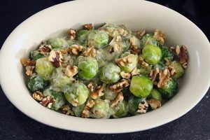 6. Hak de walnoten grof en roer door de romige spruitjes.