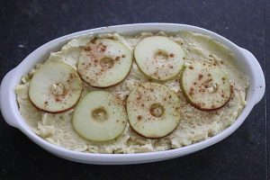 3. Giet de pan met aardappels en appel af en doe terug in de pan. Pureer met een stamper fijn en maak de stamppot smeuïg met een klont boter en melk. Breng de hete bliksem op smaak met peper, zout en een snufje kaneel. Verdeel de hete bliksem over het gehakt. Leg de plakken appel er op en voeg nog een snufje kaneel toe. Bak de ovenschotel met hete bliksem nog 20 minuten in de oven tot de appels mooi gekleurd zijn. Bekijk het basis recept voor hete bliksem