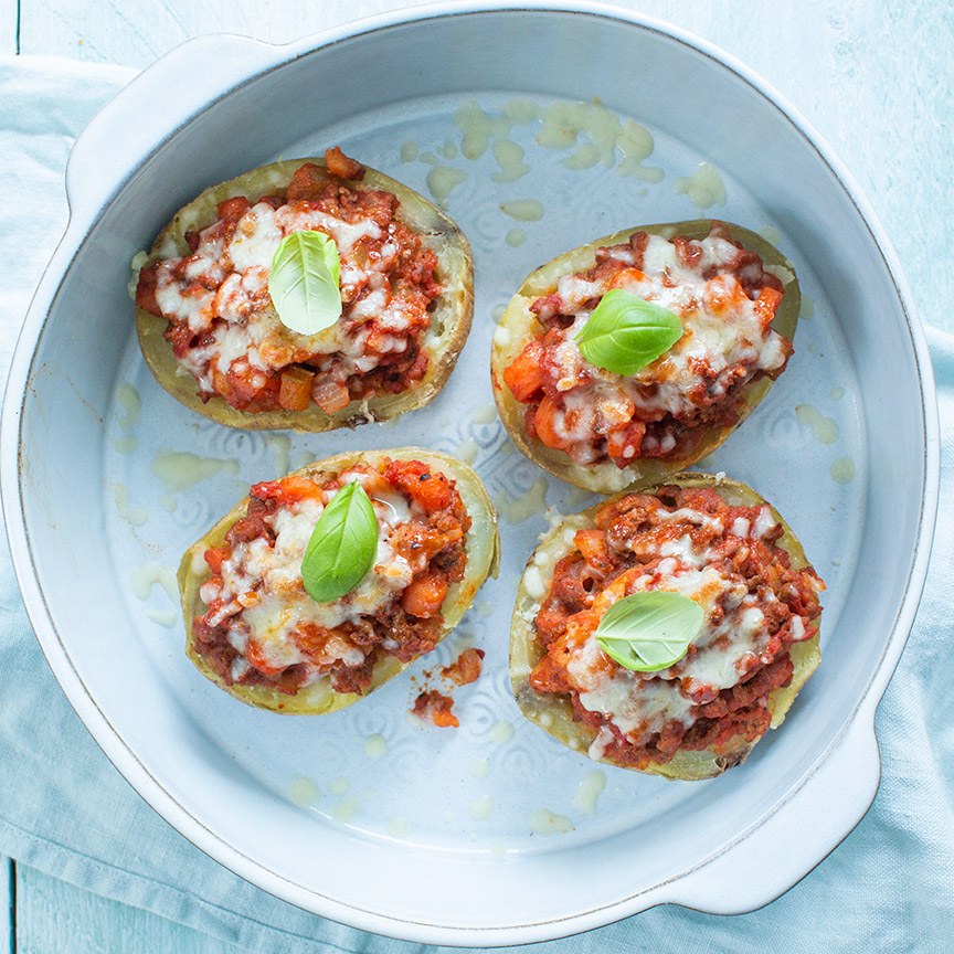 Gevulde aardappels bolognese