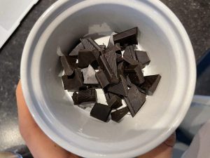 3. Meng vervolgens met een spatel de pure chocolade in kleine stukjes er doorheen.