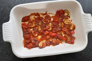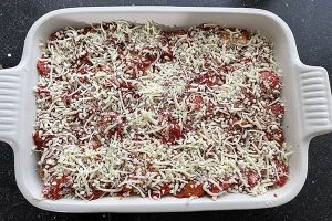 9. Bestrooi met een beetje kaas en zet de gezonde(re) lasagne ca. 45 minuten in de oven.