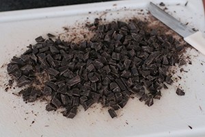 1. Verwarm de oven voor op 180 graden en bekleed een bakplaat met bakpapier. Hak de pure chocolade in kleine stukjes. Kluts de eieren in een kom door elkaar. Zeef het speltmeel en roer dit erdoorheen, samen met de kokos, kokosolie en honing. Roer tenslotte de chocoladestukjes erdoor.