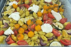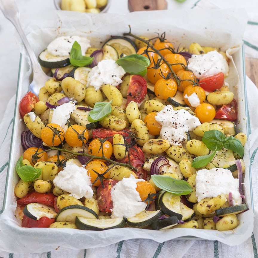 Gnocchi traybake met pesto