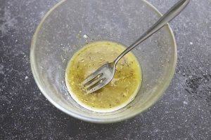 1. Meng de ingrediënten voor de Griekse dressing door elkaar.