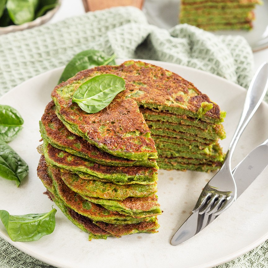 Groene pannenkoekjes met spinazie stap 1 Groene pannenkoekjes met spinazie stap 2 Groene pannenkoekjes met spinazie stap 3